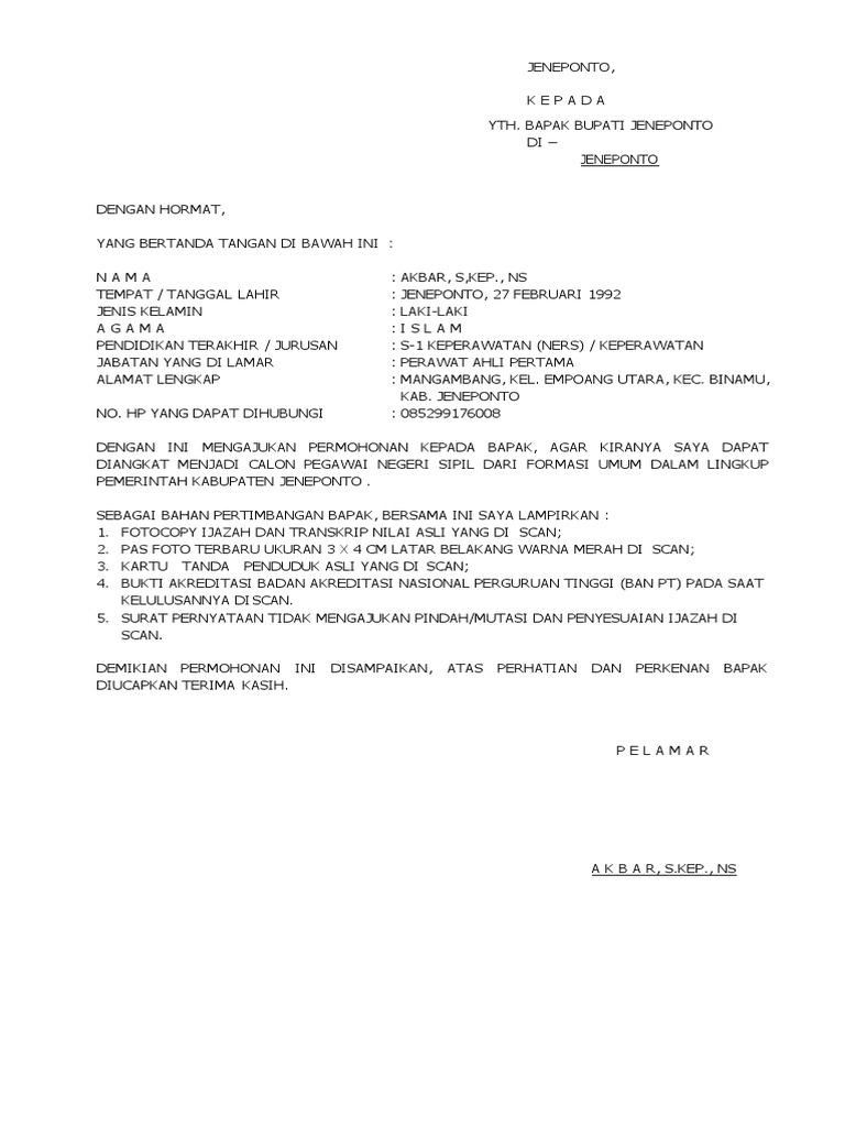 | Lihat Lihat Surat Lamaran Cpns Provinsi Sulawesi Selatan Kumpulan Contoh Gambar |